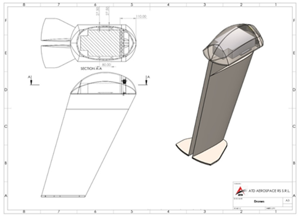 The foldable flying wing UAV has an electrical actuated folding mechanism, a wingspan of 1.4 m and a payload capacity of 3 kg (max volume 3 liters)