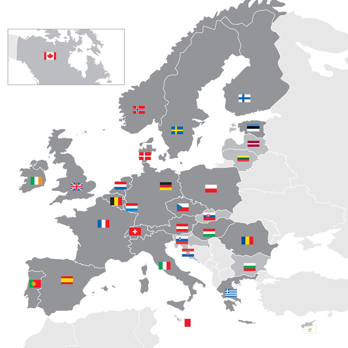Canada also takes part in some projects under a Cooperation Agreement and Slovenia and Latvia are Associate Members.
