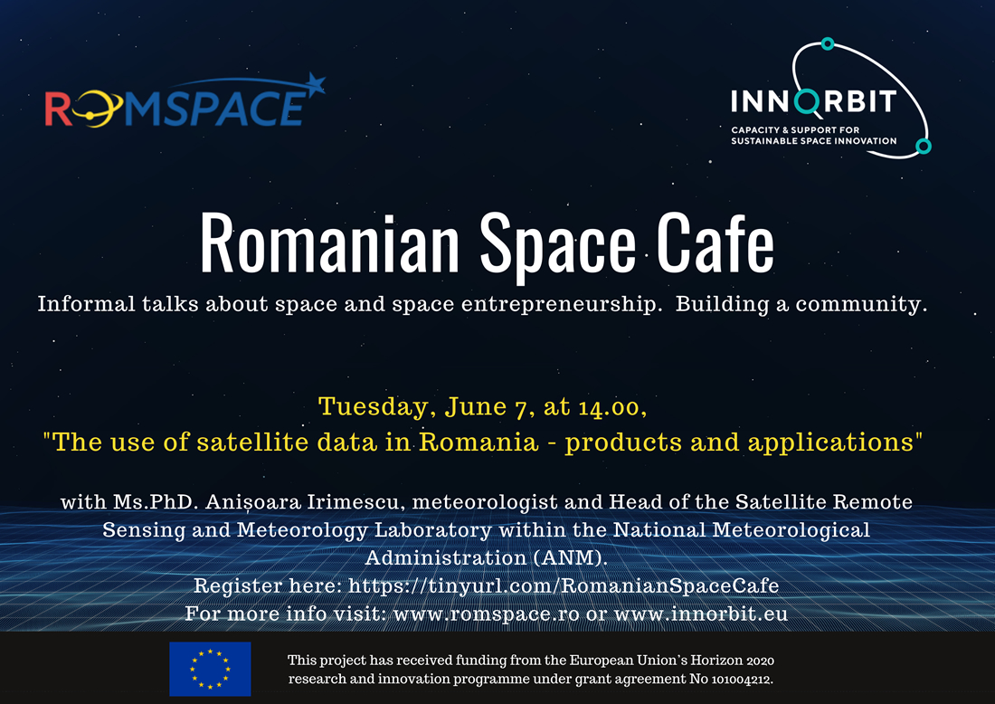 The second Romanian Space Café focuses on "The use of satellite data in Romania - products and applications" in domains such as meteorology, agro-meteorology, forests, water management and environmental protection. The presentation and discussion will take place in Romanian.